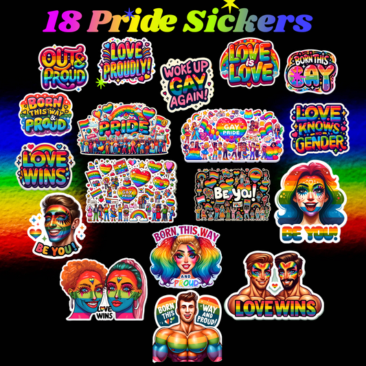 18 Gay Pride Stickers, LGBTQ Rainbow Stickers, Vinyl LGBT Gay Pride Stickers for Laptops, Water Bottles, Luggage, Scrapbooking