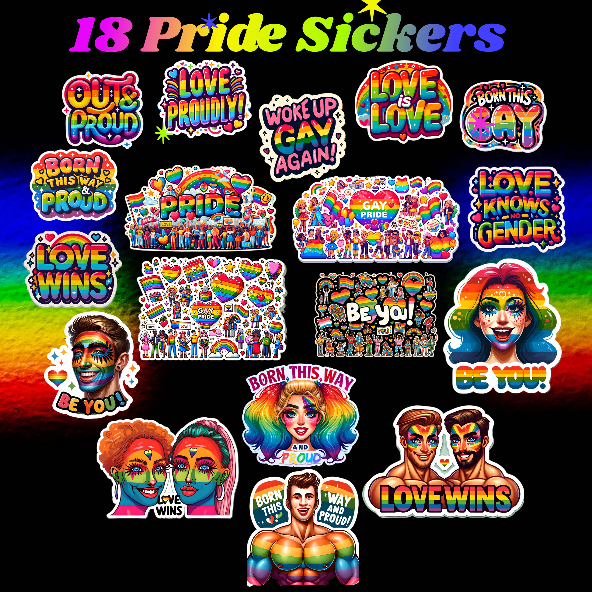 18 Gay Pride Stickers, LGBTQ Rainbow Stickers, Vinyl LGBT Gay Pride Stickers for Laptops, Water Bottles, Luggage, Scrapbooking